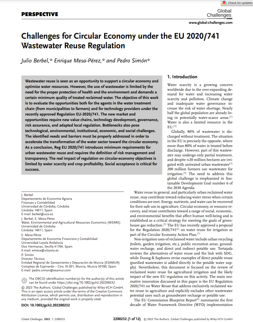 Challenges for Circular Economy under the EU 2020/741 Wastewater Reuse Regulation