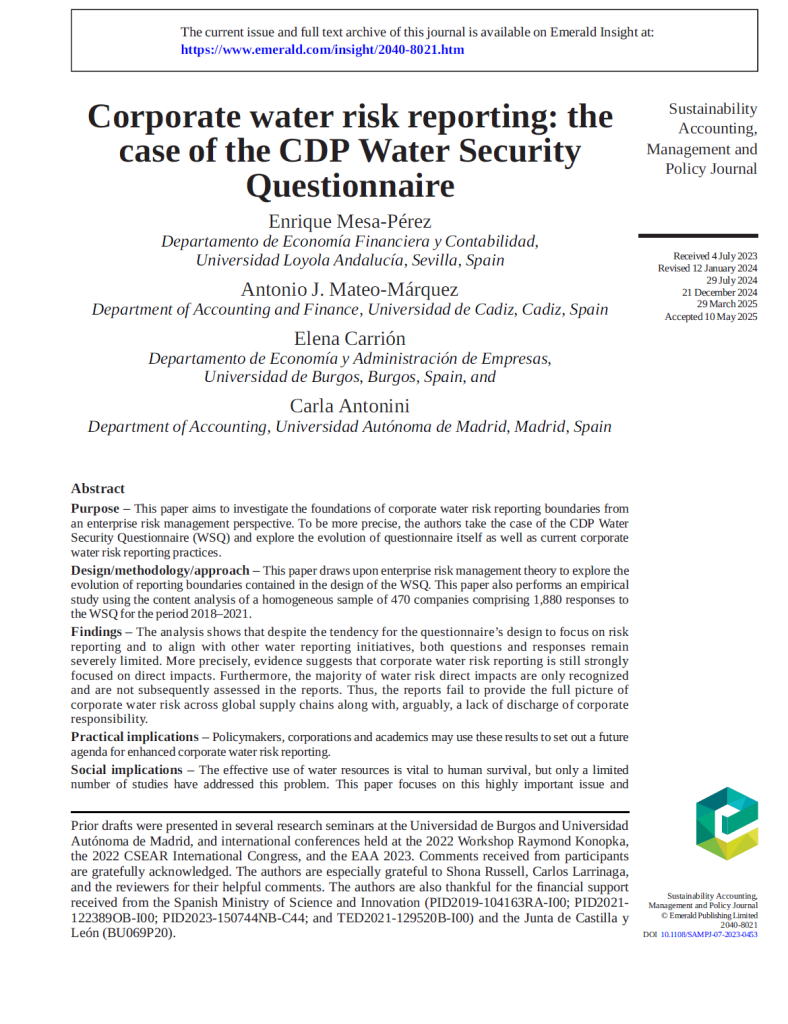 Corporate water risk reporting: the case of the CDP Water Security Questionnaire